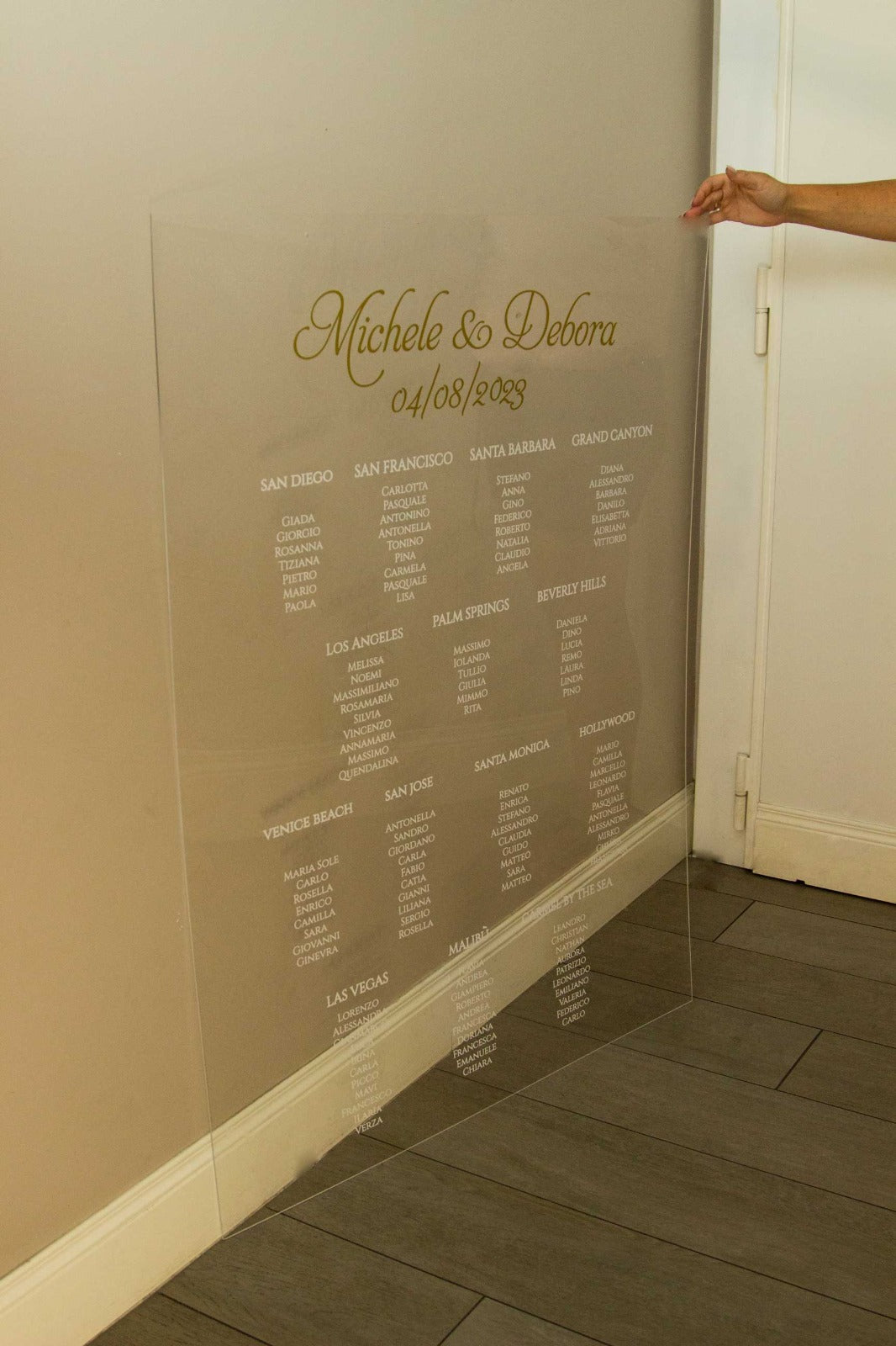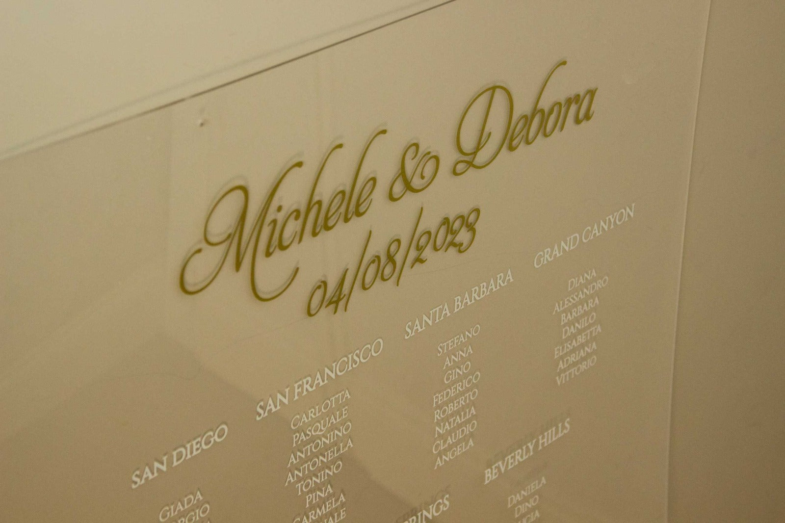 Il nostro pannello con stampa UV per il tableau dei tavoli è l'elemento essenziale per aggiungere un tocco particolare al tuo matrimonio.
